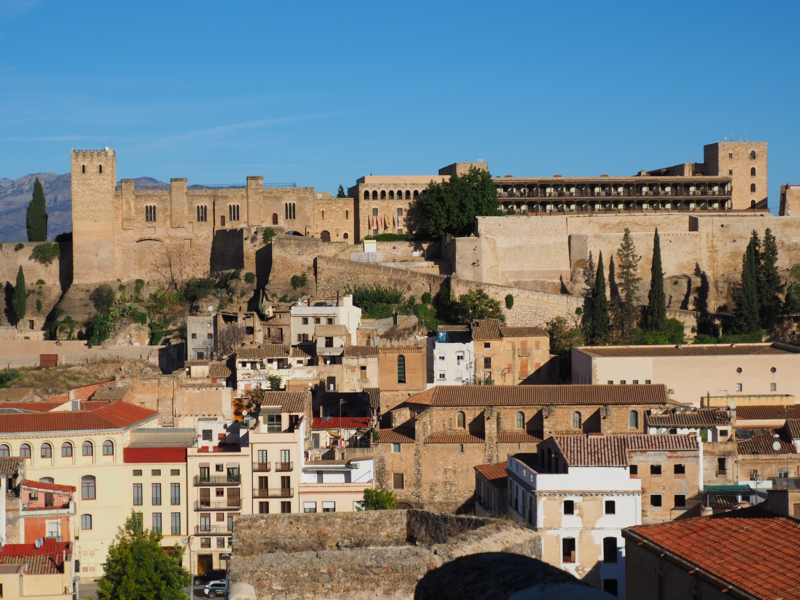 城跡に建てられたパラドール・デ・トルトーザ(奥)とトルトーザのまちなみ