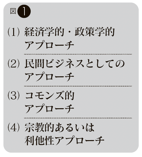 こうしたインフラを構築するアプローチは、以下の4点があると考えられる。(1)(2)は今回の話題とは関連が薄いため説明を省き、(3)(4)について具体的な事例を紹介する。(図1)