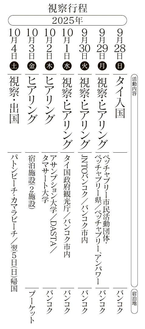 ❶タイ視察の全体像と国内旅行者の地方分散