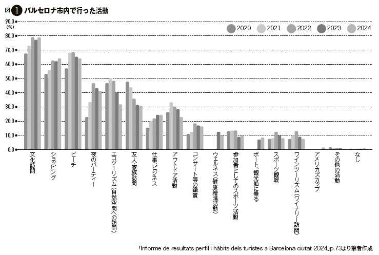 1992年のオリンピックを契機に急成長したバルセロナ市の観光業は、年間訪問者数は都市人口の約9・3倍(2024年)に達し、観光がもたらす負の影響を都市に集中させ、深刻な社会的コストを生じさせている。