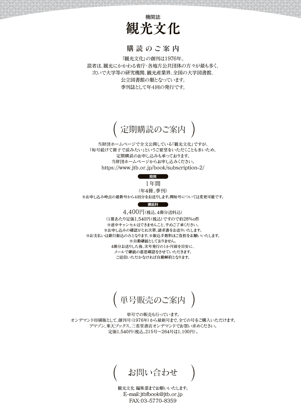 また、以下の引用掲載確認書にご記入の上、 zaidan_info@jtb.or.jp までお送りください。  引用掲載確認書(PDF)  引用掲載確認書(EXCEL)